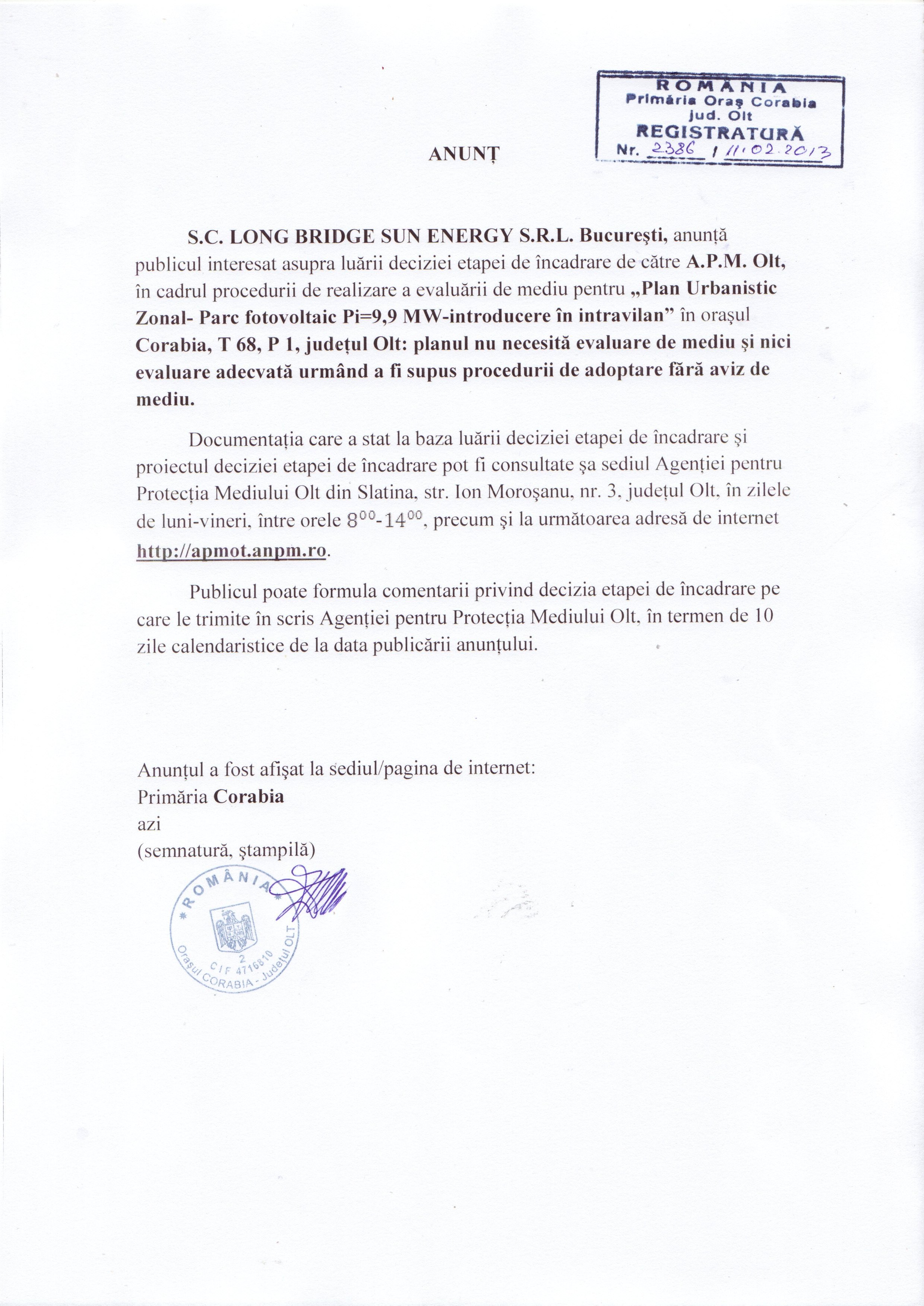 Unitate teritoriala de referinta - CORABIA - Parc Votovoltaic 9,9 MW